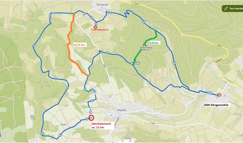 (Verpflegung bei ca. 4,8 und ca. 11,0 km)